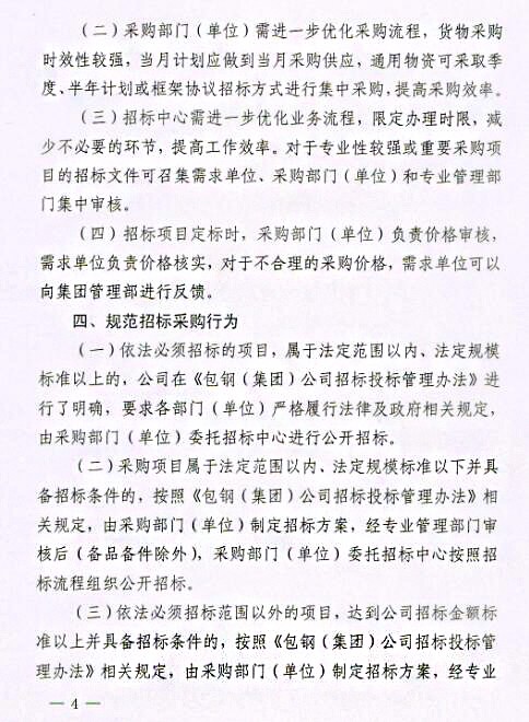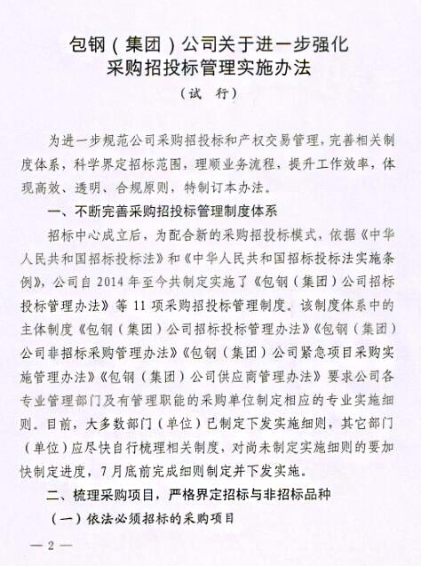 關(guān)于印發(fā)《包鋼(集團)公司關(guān)于進一步強化采購招投標(biāo)管理實施辦法(試行)》的通知